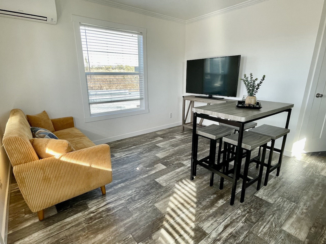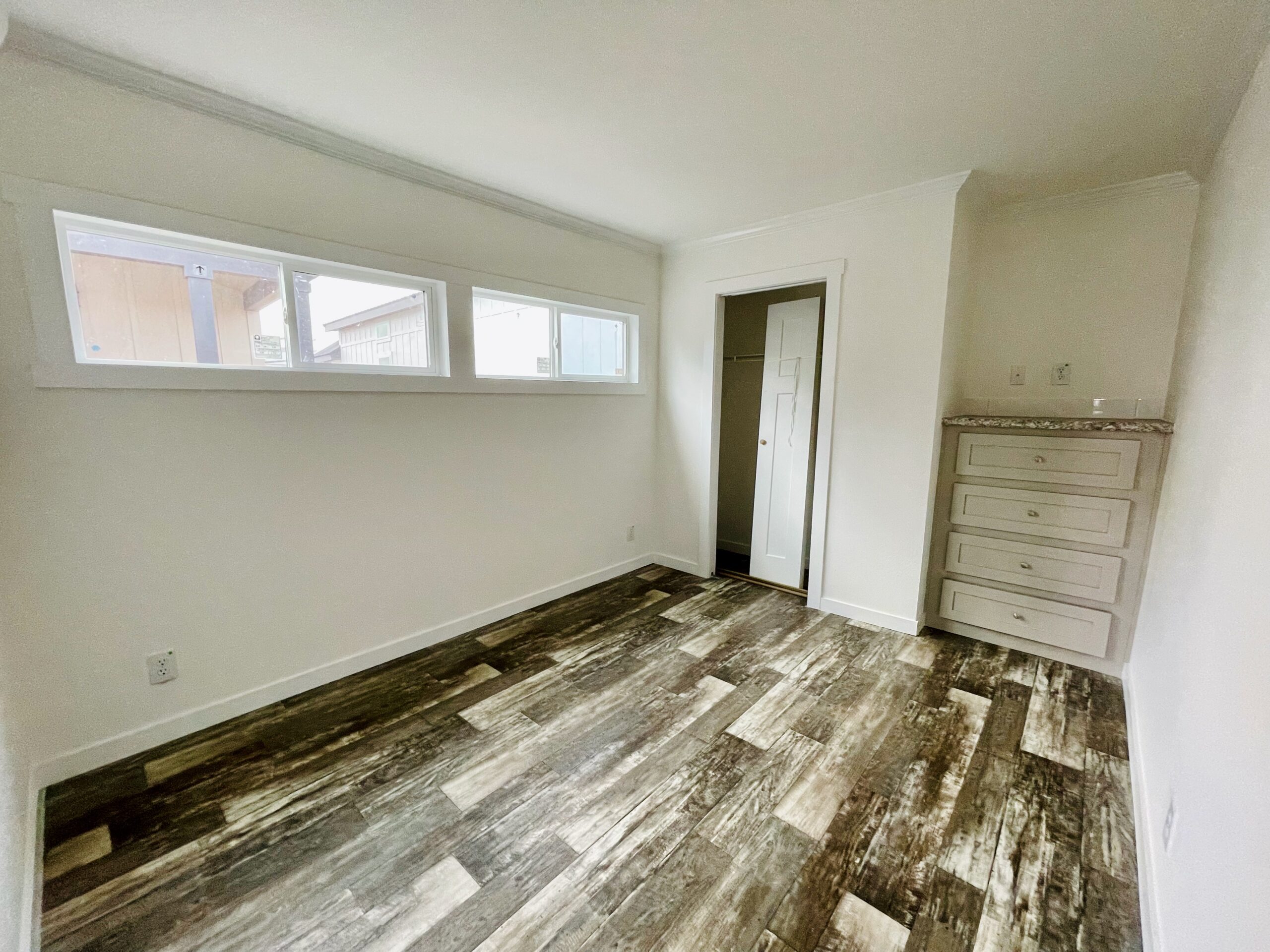 The bedroom is a bright retreat, with perfectly placed windows that flood the space with natural light, creating an airy, expansive feel. The Crane’s smart layout and inviting design make it ideal for full-time living, weekend getaways, or as a rental retreat.