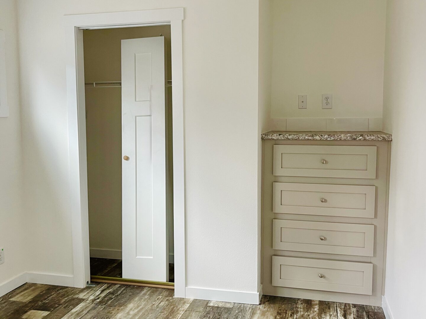 - Built-in chest of drawers (per print)